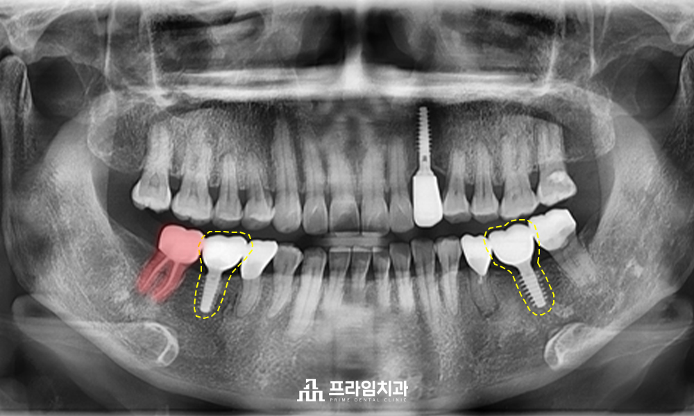 그래서 오른쪽 아래 큰 어금니는 발치하고,